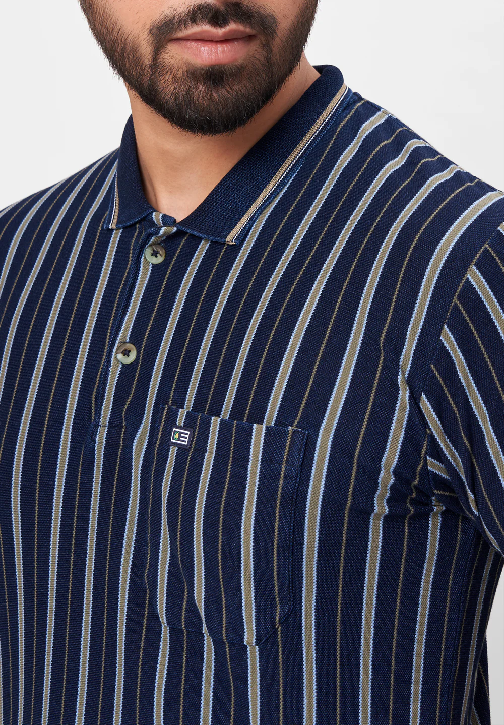 Stay comfortable and stylish with this blue cotton polo T-shirt I42360 featuring vertical stripes. Its breathable fabric ensures all-day freshness, while the vertical design adds a sleek, elongating effect to your look. Perfect for casual outings or relaxed office wear, it combines classic style with everyday ease.