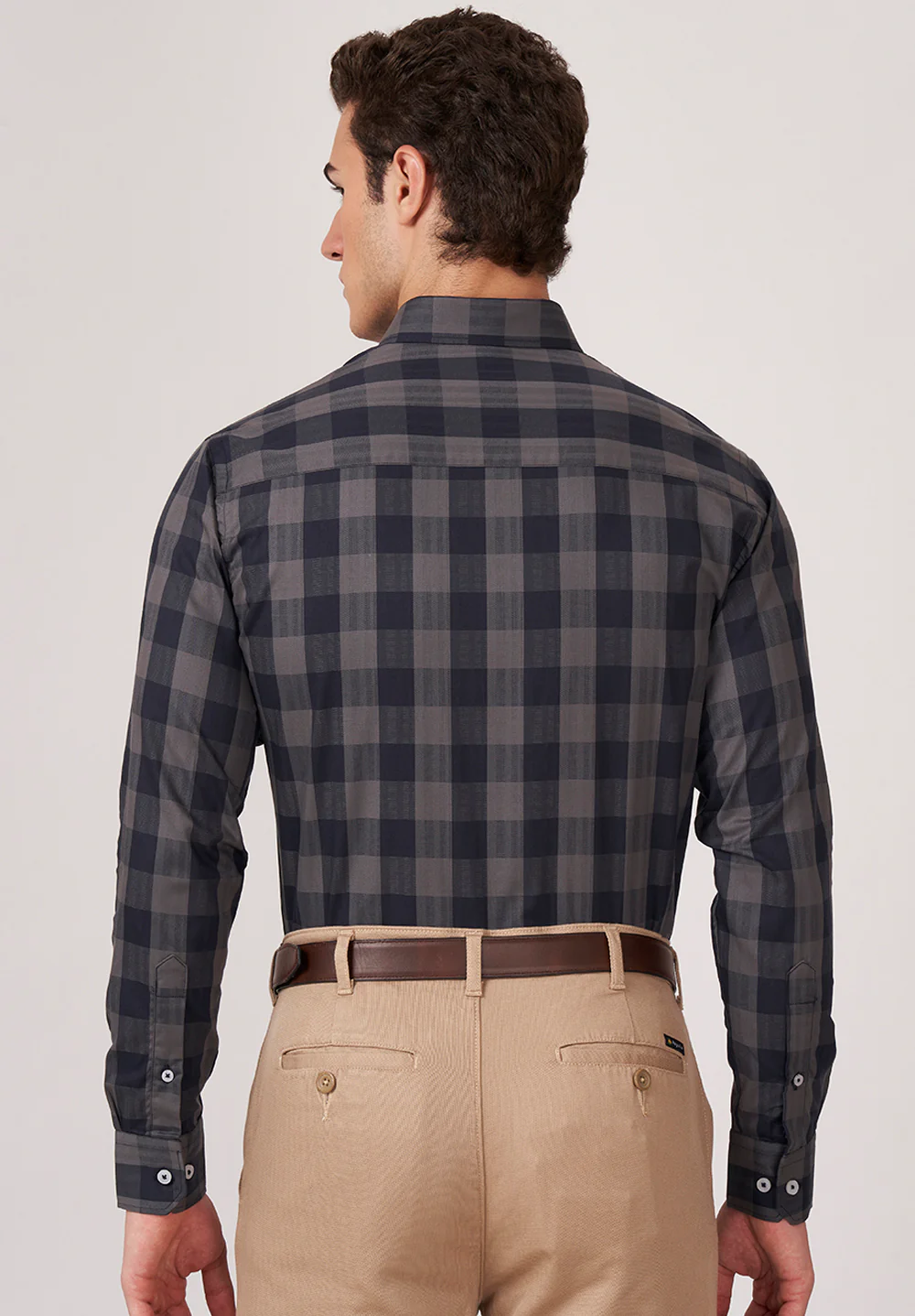 Elevate your formal wardrobe with our luxurious PURE COTTON FORMAL- SLIM FIT SHIRT - S49143. Crafted from premium pure cotton material, this shirt features a stylish grey check pattern and an urban twist that adds a touch of sophistication to your look. Indulge in the ultimate comfort and style.