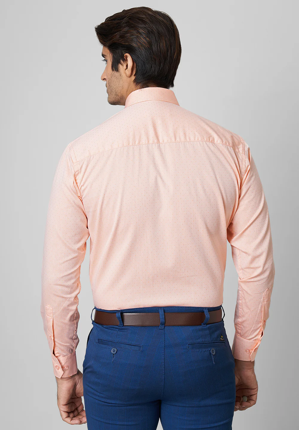 Introducing the anti-stain collection. Tailored from 100℅ breathable cotton fabric that allows you to brush off stains easily. This soft fabric designed to endure multiple washes without losing its sheen & look, ensures all-day comfort and a carefree dressing experience. This orange dobby shirt has a silk-like sheen that has a fresh rich look. It comes in a regular fit and can be paired with the vivid dark coloured solid or textured 'Cottonking Trousers' for an exquisite look. Available in full/half sleeve variant. Ideal for office wear, meetings or Friday dressing.