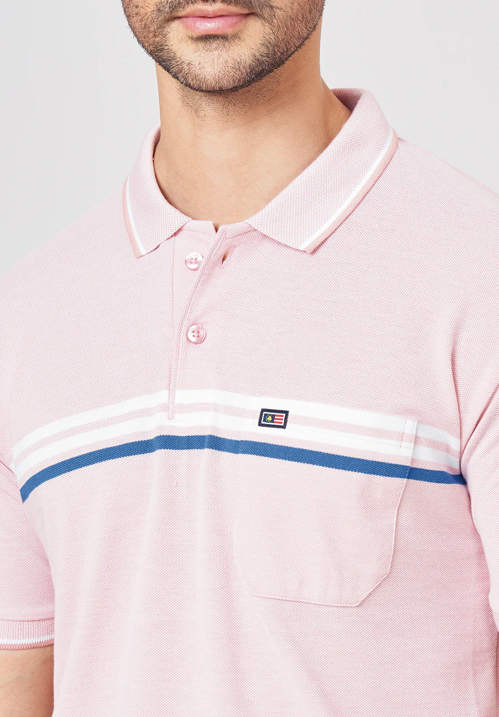 Polos from 'Cottonking' blend comfort, & versatility effortlessly.The jersey knit fabric is soft & stretchy allowing a good fit.The bright colours & patterns are exciting & youthful. Pair them with 'Cottonking' or cotton trousers for a medley of style & comfort. This pink t-shirt with minimal stripes is stylish. Pair it with the choicest bottoms from 'Cottonking' for an appealing look.